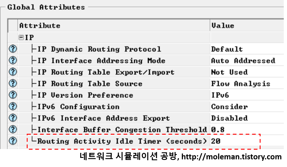 이 "일정 간격"은 기본적으로 시뮬레이션 실행시의 "Routing Activity Idle Timer (seconds)" 속성값에 의해 정해진다.