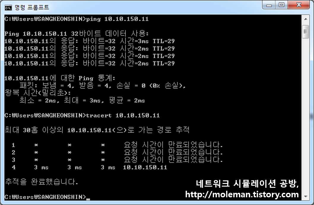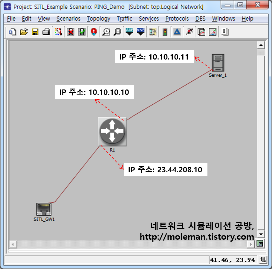 Riverbed(OPNET) Modeler SITL 모듈 사용시 시나리오상에 배치한 라우터나 단말 노드가 tracert[1]에는 정상적으로 응답하지 않는 문제(?)가 있음은 "SITL tracert 예제(1)"에서 확인하였다.